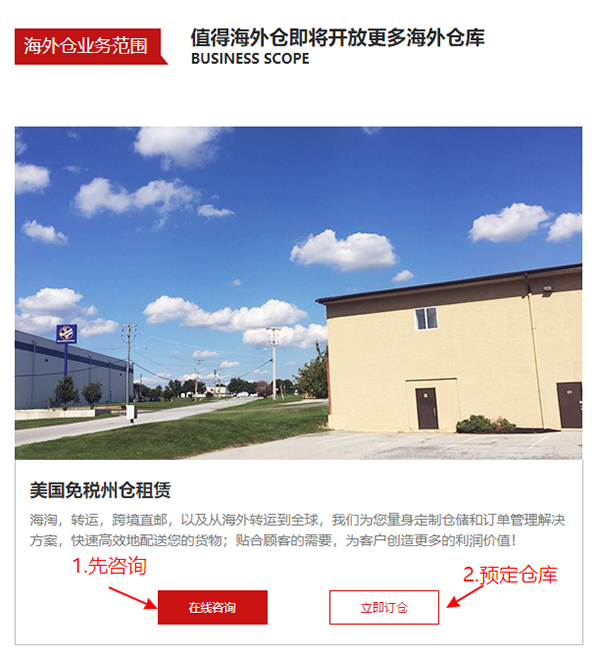 然后我們找到租賃美國(guó)倉(cāng)庫(kù)的欄目,建議大家先咨詢?cè)儆唫}(cāng)哦!